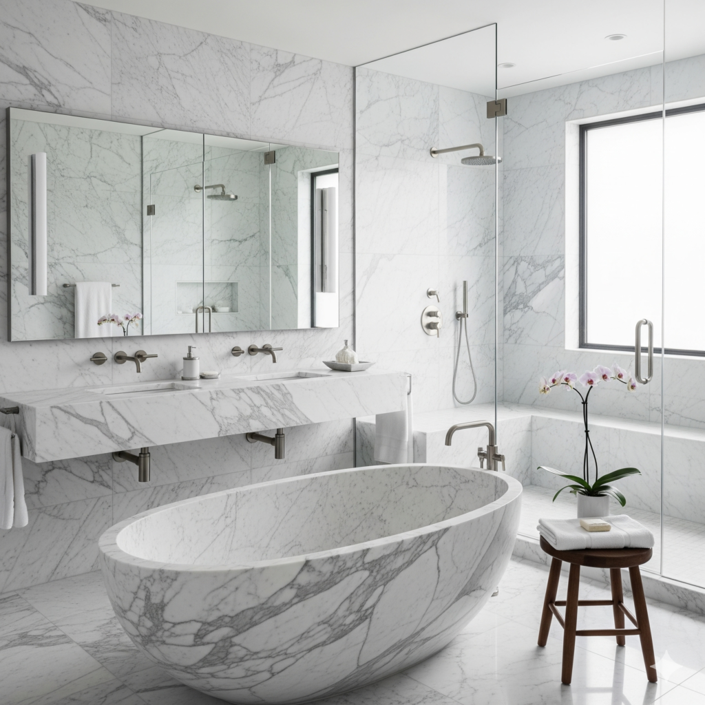 Choosing Italian marble for your bathroom walls is a decision that speaks to style and sophistication. While no natural stone is completely “waterproof,” the key to success lies in two factors: selecting a marble with a denser composition and, most importantly, ensuring it is professionally installed and properly sealed.