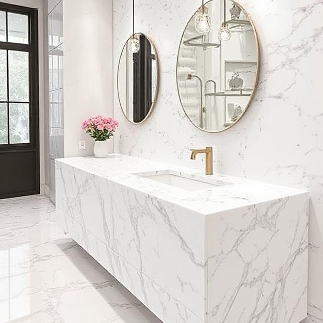 - Bathroom Vanities: Kashmir White Granite gives a bathroom a spa-like feel.