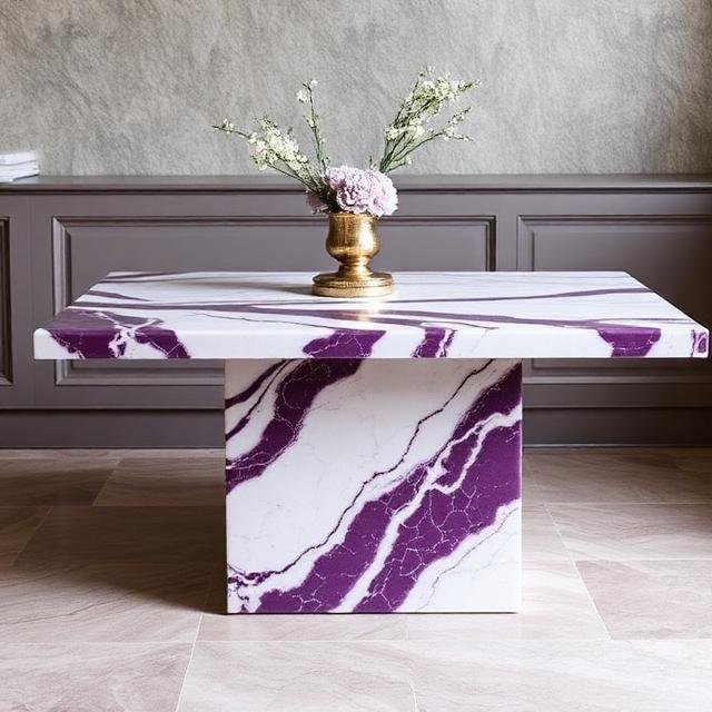 - Calacatta Viola “Bold Vein” Table: Calacatta Viola marble wine color aur deep purple mein hoga. Ek simple rectangular block design ka stone bhi showstopper ban jata hain.
