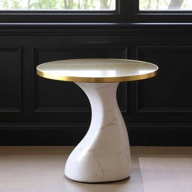 - Mixed Material Sculptures: Aise tables jahan ek bhari marble base ke upar ek sleek glass ya brass top hothi hai. Ye ek heavy vs light ka contrast modern design hoga.