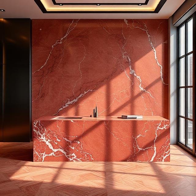 - The Monolithic Block: Ek single aur solid color ka marble jo zameen se juda rehta hai wese design luxury ka look detha hai.
